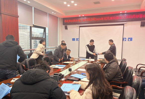 春启新程,纪律先行。2月27日,怀化市水利水电工程有限公司召开2026年党风廉政建设工作动员部署会。公司董事长邓永光,党支部书记、总经理刘宏明出席会议并讲话,各科室及项目部负责人等30余人参加会议。