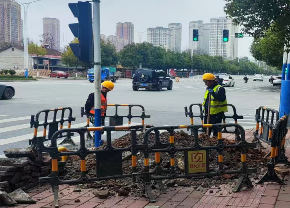 正清路雨污分流改造工程工人正在施工