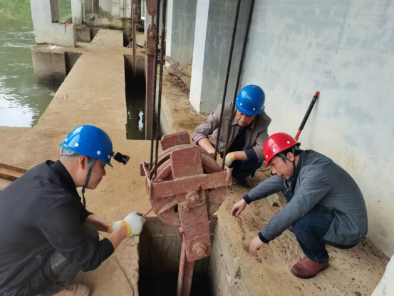 (图二:运行班组人员对闸门进行检查并泄洪)